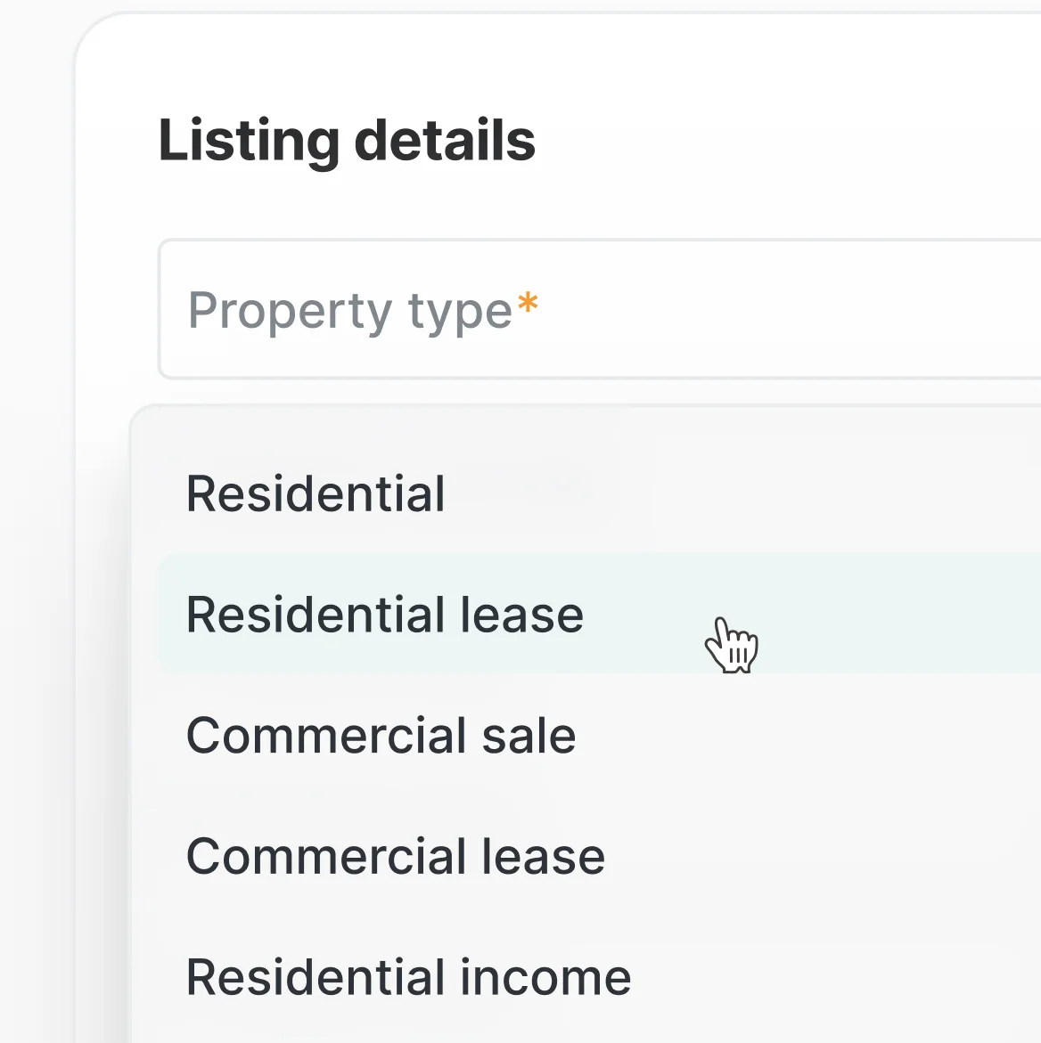 One form that adapts to any property type or status. The structure of the form dynamically responds to entered data.